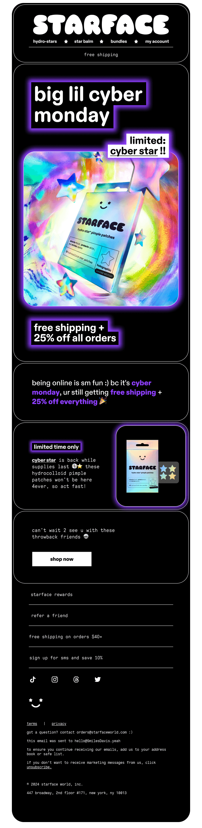 Target browsers: If someone viewed products but didn’t buy, send them a personalized Cyber Monday reminder with urgency.