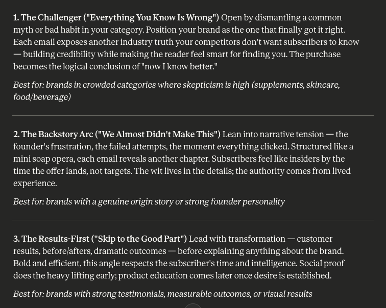 50 campaigns, 130+ pages of welcome flows, and 10 copywriting frameworks. Everything you need to stop guessing and start driving retention. → Unlock the Vault