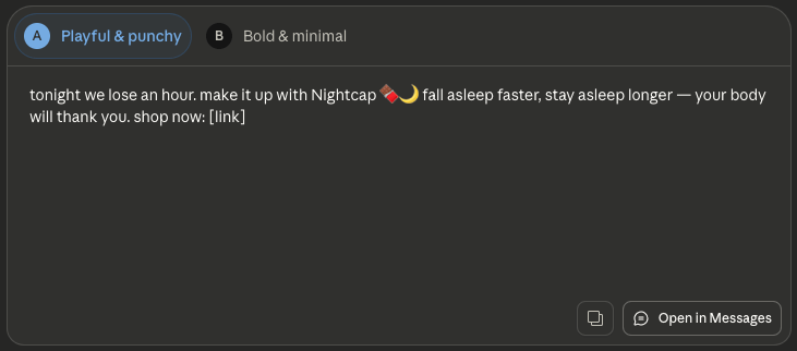 The same applies to subject lines, SMS copy, and campaign ideas. Use AI to get you 80% of the way there, then add the 20% that makes it sound like you.
