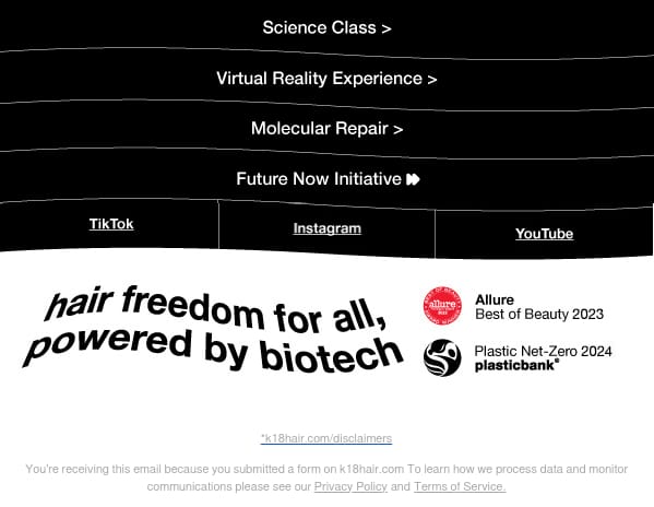 K18’s Damage Shield Email: Education That Reduces Friction and Drives Retention
