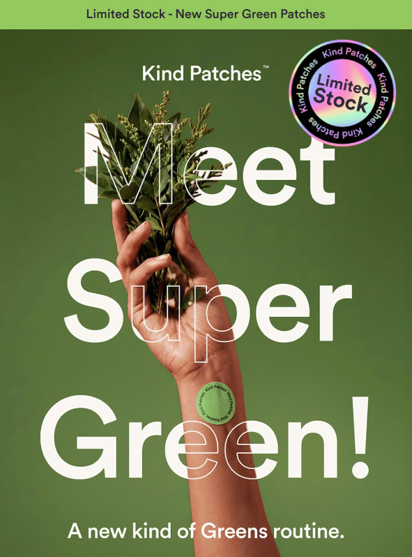 Kind Patches launched their Super Green product, and instead of just listing what it does, they built the entire email around why patches beat green drinks.