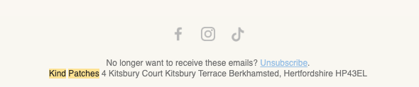 No social links. For a product this visual, Instagram and TikTok would be natural places to show the patches in action.