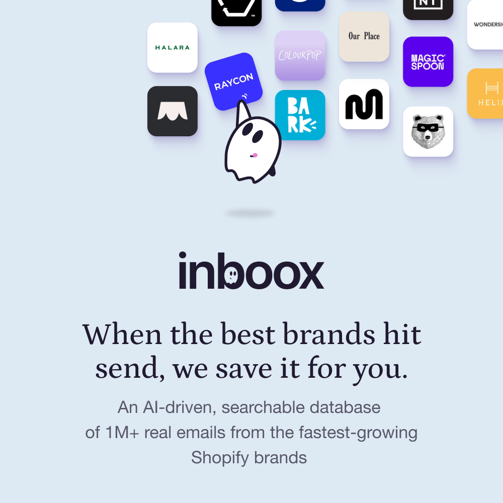 Built by Chase and (we see just about every ecommerce email on earth), Inboox is your AI-powered inbox playbook: 1M+ real emails, full funnel, fully searchable.