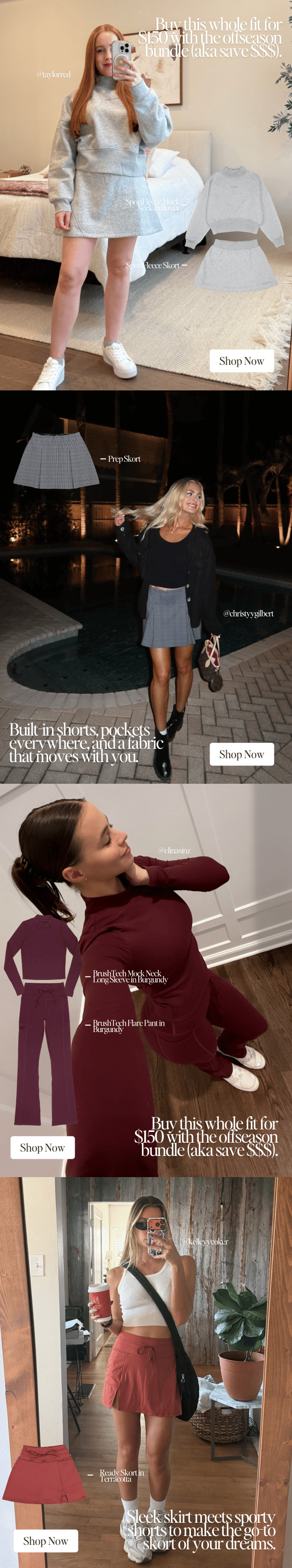 The message reinforces versatility early. You see these outfits on the course, at home, out at night, and running errands. That expands how shoppers think about the product.